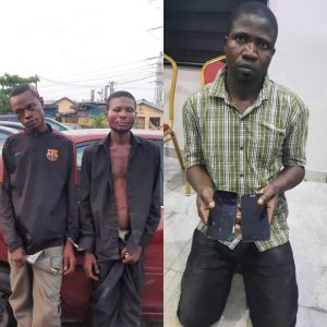 The suspect and his gang members, Roland Onoge, m, 38, and Daniel Abah, m, 28, who were intercepted by officials of LASTMA on Thursday 1st April, 2021, along Marwa Bus Stop Lekki, having robbed one Isaac Amarachi, f, in their unregistered red Toyota Camry operational car, are assisting the police on getting more information about the syndicate and many others operating around Lekki and Ajah Areas of the state.