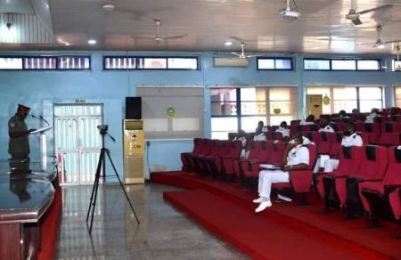 In his welcome remarks, the Trg Captian of the school, Navy Capt ME Ejumabone described the guest lecturer (Ag comdt) as a seasoned senior officer who has wealth of experience and knowledge in the field of Public Relations practice and management of information – also a friend of the school. He urged the students to make good use of the well packaged lecture; as it will go along way in enhancing their capacity as future commanders.