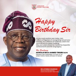 On the auspicious occasion of the 74th birthday of Pres. Bola Ahmed Tinubu, GCFR, the Executive Secretary/CEO of the Lagos State Security Trust Fund LSSTF, Dr. Ayo Ogunsan, offers not just felicitations, but a deeply reflective tribute to a excellent statesman whose leadership has reshaped the contours of Nigeria’s economic, governance and security architecture. This is more than a celebration of years; it is an acknowledgment of courage, conviction, and the enduring weight of reform, National Association of Online Security News Publishers, NAOSNP can report.