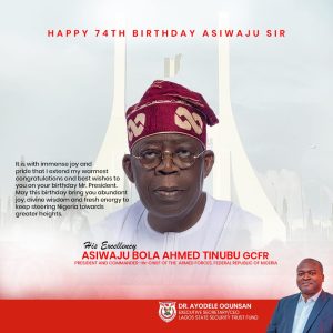 On this 74th birthday, Ogunsan salutes Pres. Tinubu whose life’s work continues to inspire confidence, command respect, and rekindle hope for a stronger, more secured and resilient Nigeria. President Tinubu is not merely a leader of the moment, but an architect of national renewal.