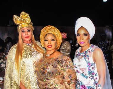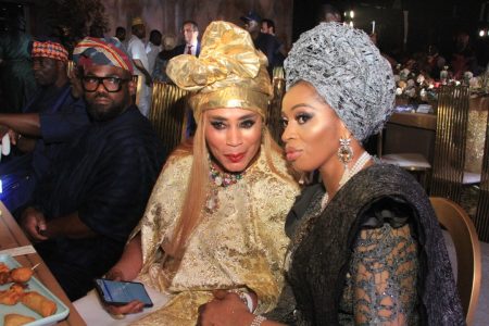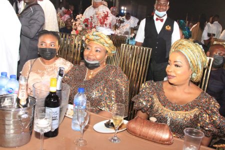 L-R: Mother of the Bride, Alhaja Wosilat Seriki; Wife of the Minister of Works and Housing, Dame Abimbola Fashola and a guest.