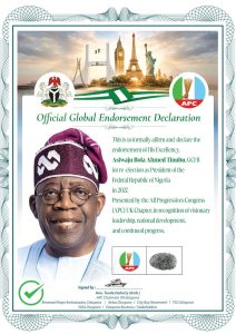 The All Progressives Congress (APC) United Kingdom Chapter has formally endorsed the President of the Federal Republic of Nigeria, Bola Ahmed Tinubu, GCFR, for a second term in office.