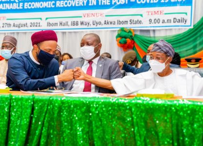 Other dignitaries in attendance at the occasion were the Minister of Sports and Youth Development, Sunday Dare; the Minister for State, Finance, Budget and National Planning, Prince Clem Agba; the Minister for State for Education, Chukwuemeka Nwajiuba; Permanent Secretary, Ministry of Women Affairs, Engr. Funso Adebiyi; representative of the First Lady and wife of the Governor of Akwa Ibom State, Mrs Martha Udom Emmanuel; representative of the Speaker, Akwa Ibom State House of Assembly, development partners, civil society organisations, governments and non-government organisations.