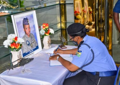 According to Ibikunle, the delegation was received on behalf of the CAS by the NAF Chief of Administration, Air Vice Marshal Mohammed Idris, who led the team to the NAF Memorial Arcade where they laid wreaths and signed the condolence register.