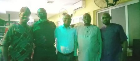 L-R: Chief Kingsley Oiboh; DIG David Folawiyo Rtd; Mrs. Ajogun; CP Eward Awolowo Ajogun Rtd and Area Commander, Area F, Lagos Command, ACP John Alli Zongo
