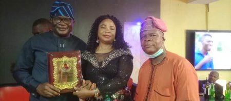 L-R: Chief Kingsley Oiboh; CP Edward Awolowo Ajogun Rtd and his Wife, Mrs Ajogun