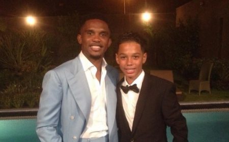 L-R: Barcelona legend Samuel Eto’o and his son Etienne