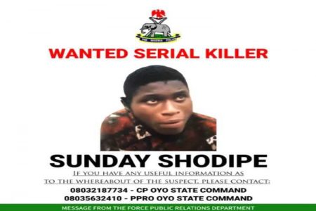 Just last Thursday, a N500,000 bounty was placed on Shodipe’s head by the Police.