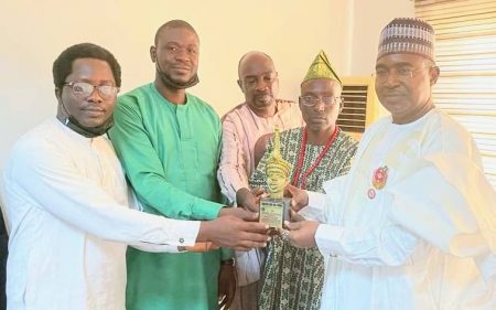 In recognition of his excellent contributions over the 2 decades to the growth of various youths’ Organisations across the States of the Federation, Comrade AWA Bamiji, Aare – Apapo (President – General) Agbarijo Egbe Odo Yoruba (Grand Council of Yoruba Youths) led other 4 powerful members, Gbenga Adedamola and Ibiok Emmanuel from Ekiti and Akwa Ibom State Chapters of the Nigeria Youth Congress (NYC) under the Presidency respectively; Afolabi Osho, a media Consultant with NTA Headquarters, Abuja; and Salam Surajudeen Oyejide, the immediate past Senate President of the National Association of Nigerian Students (NANS) and an Aspirant to the topmost seat of All African Students’ Union (AASU); to the National Headquarters of the National Drug Law Enforcement Agency (NDLEA), Porthaircourt Street, Area 11, Garki, Abuja, Today, to bestow “Baba Isale Awon Odo Orile Ede Apapo Naijiria” Ori Olokun Yoruba National Award on the Chairman, National Drug Law Enforcement Agency (NDLEA) Gen Buba Marwa (Rtd), 20 years after getting this same Odu’a Award, “Bosom friend of Yoruba”, from this same Organisation inside Trenchard Hall, University of Ibadan, Ibadan.