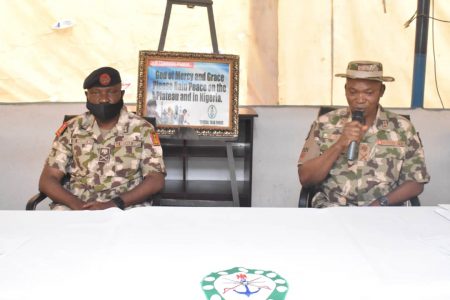 Speaking during the Handing and Taking Over Ceremony held at the Headquarters Operation SAFE HAVEN on Thursday 11 March 2021, the outgoing Commander, Major General Okonkwo lauded the personnel of Operation SAFE HAVEN for their cooperation, steadfastness and dedication throughout his tour of duty as the Commander. He charged them to continually demonstrate high level of professionalism in the discharge of their duties as stakeholders in peace building.