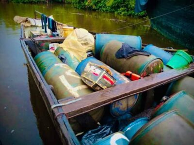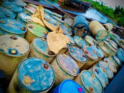 The Nigeria Security and Civil Defence Corps (NSCDC) CG’s Special Anti-vandal Monitoring Squad (CG SAVMS) yesterday discovered over 15 boats headed for Cotonou. They were laden with over 4500 drums of illegal adulterated diesel, AGO, National Association of Online Security News Publishers, NAOSNP can report.