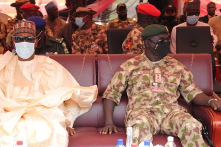 L-R: Gov. Zulum with Lt. Gen. Buratai during the commissioning ceremony