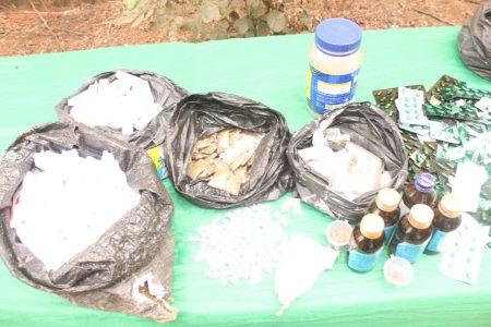 wraps of weeds suspected to be Indian hemp, four (4) sachets of Swinol, three (3) containers of Loud, fifty-five (55) wraps of