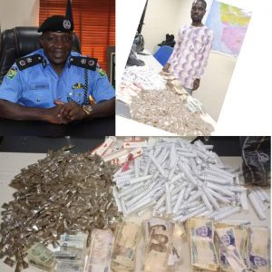 On the 6/7/2021 at about 1710hrs, while operatives of operation Delta Hawk patrol team were on confidence building patrol at Ishekpe quarters Ogwahi-uku, they intercepted and arrested one Sunday Umadia ‘m’ 41yrs of Ogbobo quarters Ogwashi-Uku. Upon search, one hundred and seventy-four (174) wraps of dried weed suspected to Indian hemp, eight hundred (800) sachet of suspected SK, ten (10) razler (roll bond), one (1) lighter and cash sum of three hundred and seventeen thousand eight hundred and ninety naira (N317,890) were recovered from him. Preliminary investigation later revealed that suspect is a major dealer in illicit drugs. Investigation is ongoing.