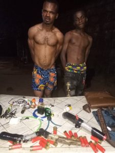 On the 5/7/2021 at about 2230hrs, a distress call was received that armed robbers were terrorizing residents of Agbarha-Otor dispossessing them of their belongings. On receipt of this information, the DPO Ughelli Division detailed detective to the scene, the armed robbers were successfully naturalized by the police men, and one of the suspect’s Obakpororo Julius ‘m’ of No. 68 Agbarha-Otor 43yrs was arrested. Exhibits recovered from him includes one (1) locally made pistol, six (6) live cartridges, one (1) expanded cartridge and some wraps of substances suspected to be Indian hemp and four (4) difference phones. Investigation is ongoing.