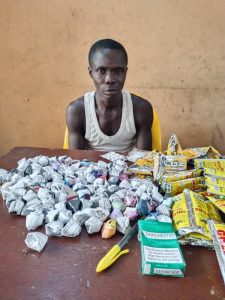 Similarly, On 5/7/2021 at about 1300hrs, after series of intelligence gathering, ‘A’ Division Warri Rapid Respond team raided a black spot at Ogedegbe street Warri where one Austin Ojunom ,m, 29yrs was arrested with one hundred and twenty nine (129) wraps of weed suspected to be Indian hemp, suspect confessed to the crime. Investigation is ongoing.
