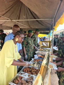 Earlier in his welcome address, the Commander, FOB Sobe, Lieutenant Colonel Stanley Agboro, stated that the COAS Luncheon is a significant and symbolic annual event held during festive periods such as Eid-el-Fitr, Eid-el-Kabir, Easter, and Christmas celebrations. He explained that the initiative is a strategic leadership engagement designed to boost the morale of frontline soldiers, recognise their sacrifices, honour fallen heroes, and strengthen the bonds of camaraderie within the military. He also appreciated the Brigade Commander and his entourage for visiting his area of operational responsibility to celebrate the Sallah luncheon with the troops. He equally appreciated the Chairperson Owan West LGA Madam Joy Ohonyon who was represented by the Vice Chairman Mr Dele Aleburu as well as the HRH Anthony Ero Aleburu I, Odibiado of Sobe for gracing the event. He further thanked heads of other security agencies in Sobe for honouring the invitation.