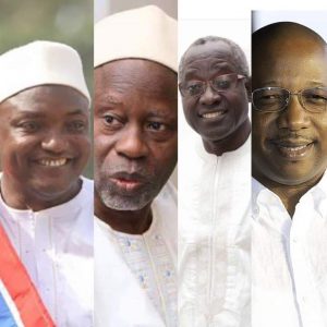 L-R: Incumbent President, Gambia, Adama Barrow of National People’s Party (NPP); main opposition contender Lawyer Ousainou Darboe of United Democratic Party (UDP); Hon. Halifa Sallah of People’s Democratic Organisation for Independence and Socialism (PDOIS); Mama Kandeh of Gambia Democratic Congress (GDC).