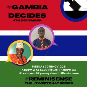 ‘For the Electoral Commission, things have been tough for them. They have rejected the application of 15 candidates including political parties and independent candidates. 2 of the rejected parties have taken the matter to high court and there was a ruling on their favour but the IEC is not backing down as they have filed an appeal against High Court ruling according to a release by the Electoral Commission. They are moving according to plan’, the young Gambian said on #Reminisense the #TweetChat series.