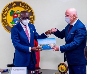 L-R: Lagos State Governor, Mr. Babajide Sanwo-Olu in a discussion with the Acting Consul-General, Kingdom of the Netherlands in Lagos, Mr. Arie Plieger during a meeting at Lagos House