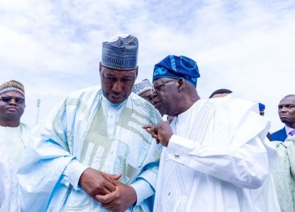 L-R: Governor, Borno State, Prof. Babagana Umara Zulum and Presidential Candidate, All Progressive Congress, APC, Asiwaju Bola Ahmed Tinubu