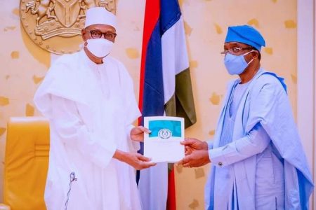 President Muhammadu Buhari has received the report of the recently held National Security Summit organized by the Speaker of the House of Representatives, Rt. Hon. Femi Gbajabiamila at the State House in Abuja.