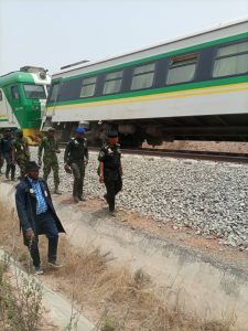 The Inspector-General of Police, IGP Usman Alkali Baba alongside the Chief of Army Staff, Lt. Gen Faruk Yahaya have visited the scene of the attack on the Kaduna bound train at Rijana Area of Kaduna State.