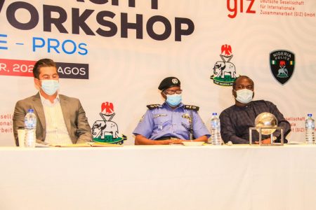 L-R: Head of Component, German Development Cooperation (GIZ Nigeria), Gertjan de Gruijter; Assistant Inspector General of Police, In Charge of Cooperative, AIG Adamu Usman and Board Member, Lagos State Security Trust Fund (LSSTF), Dr. Ayo Ogunsan during the Flagg-off of a 3-Day Capacity Building Workshop for Police PROs in Lagos.