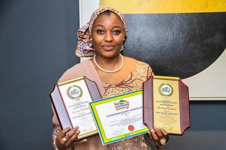 The Founder/President of Juwarat Enehezeyi Abdulsalam Foundation (JEAF), Hajia Juwarat Abdulsalam gleefully rejoiced at the presentation of the double award she bagged at the just-concluded Trek Africa Entrepreneurship Conference (TAEC’ 21). The charitable, charming, and enterprising young woman who could not make it to the entrepreneurship conference because of her many entrepreneurial engagements in FCT Abuja got the award last weekend from the conference project director and publisher of Trek Africa Newspaper, Mr. Oki Samson at Radisson Blu Hotel, Lagos.