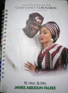 Hon. James Abiodun Faleke’s Chieftaincy Coronation Gift Souvenir (Notepad)