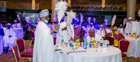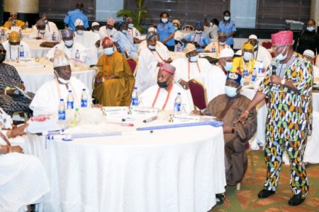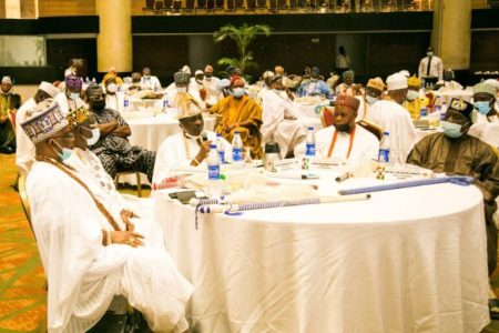 Obas endorse Asiwaju Bola Ahmed for 2023 Presidential Election at the retreat for Council of Obas held on Thursday, August 26, 2021 at the Eko Hotels and Suites, Victoria Island, Lagos.