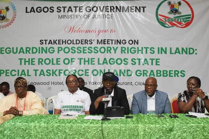 In a bid to curb and tackle the unscrupulous activities of land grabbers in the State,the Lagos State Government through the Lagos State Special Taskforce on Land Grabbers under the State Ministry of Justice, on Tuesday , organized a stakeholders meeting, Themed: Safeguarding Possessory Rights in Lands: The Role of Lagos State Special Taskforce on Land Grabbers, at Leawood Hotel, Sangotedo, Eti-Osa.