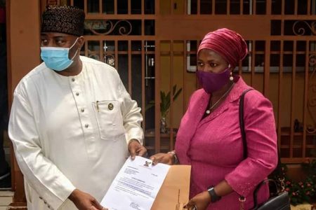 The letter was given to her at LASUBEB Office at Maryland Ikeja for her selfless service at ensuring that pupils in primary 1-6 acquire English language proficiency during the period of school closure.