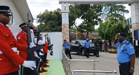 CP Tijani Fatai observing the sentry guards at Lagos State Command headquarters during his resumption of duty…