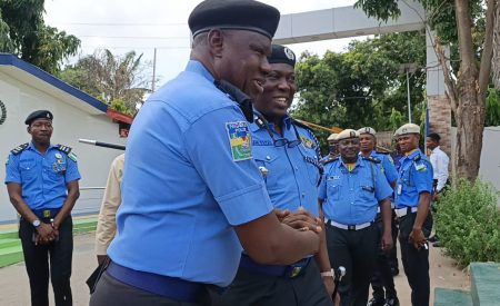 L-R: CP Tijani Fatai in a warm handshake with the PPRO, Lagos State Command, SP Abimbola Adebisi during his resumption of duty at Lagos Command’s Headquarters IkejaL-R: ACP Aka Shittu; DC Admin, DCP Khan Salihu; CP Tijani Fatai and ES/CEO, LSSTF, Dr. Ayo Ogunsan during the resumption of duty of CP Tijani Fatai at the Lagos Command’s Headquarters IkejaL-R: Executive Secretary/CEO, LSSTF, Dr. Ayo Ogunsan with CP Tijani Fatai during his resumption of duty at Lagos Command’s Headquarters Ikeja…