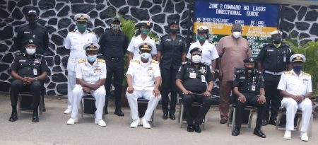 The Admiral Superintendent who visited in company of *CDR. AS EMBUKA, CDR. HUF KAOJE, CDR. A.A AGUNLOYE*, *LT. S.B AKANNI and LT E.S IBRAHIM* was accorded General Salute by men of the Nigeria Police Zone 2 Command Headquarters, Onikan Lagos, after which senior officers in the zone were introduced by the *AIG*.