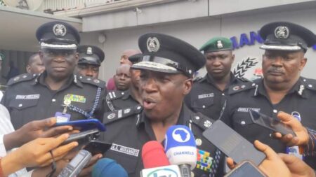 AIG Zone 2 Command, AIG Ari Mohammed Ali addressing pressmen shortly after resuming as the AIG In Charge of Zone, Onikan.