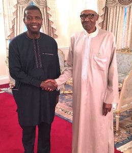 L-R: Pst. E.A Adeboye in a warmth shake with President Buhari