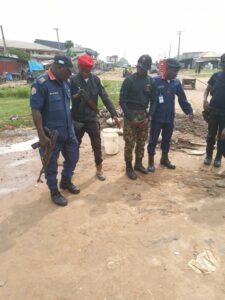On Wednesday 15th /11/2023, about1130hrs, the operatives of the Commandant General’s Special Intelligence Squad (CG’s SIS) got a credible tip-off that some unscrupulous individuals rented an apartment around Egbede area of Onelga LGA of Rivers State and recruited some equally devilish minded youth at nearby Ebocha community and constructed cooking pots which are also known as an illegal refinery to refine crude oil they have illegally gotten after vandalizing a crude oil pipeline belonging to a multinational oil company. They planned to cook/ refine and extract AGO/ diesel) from the illegal refinery, National Association of Online Security News Publishers, NAOSNP can report.