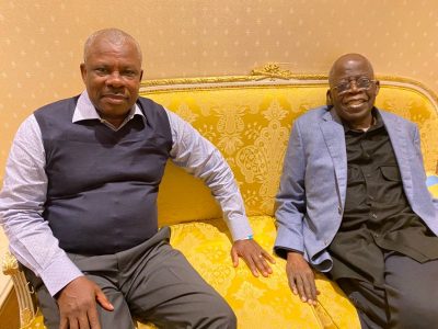 L-R: Former Governor, Ogun State, Senator Ibikunle Amosun with the National Leader, All Progressive Congress (APC), Asiwaju Bola Ahmed TINUBU in London.