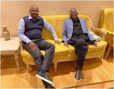In a photo that has gone viral on the internet, Sen. Amosun was seen sitting together on the same chair with his political leader (Tinubu). They even wore the same shoe… see the photo below.