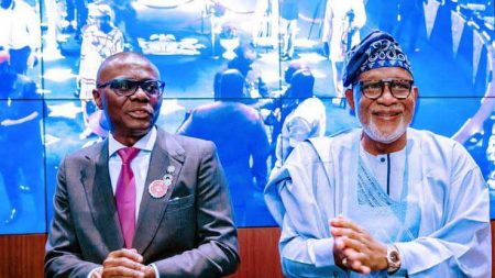 L-R: Governor, Lagos State, Mr. Babajide Sanwo-Olu with Governor, Ondo State, Mr. Rotimi Akeredolu