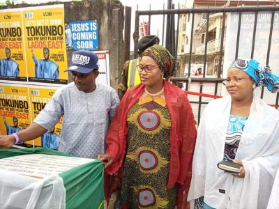 L-R: APC House of Assembly Candidate Representing Kosofe II Constituency, Hon. Femi Saheed; Chairman, Ikosi-Isheri LCDA, Princess Samiat Bada and Commissioner, Lagos State Audit Commission, Hon. Kafilat Ogbara