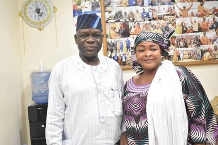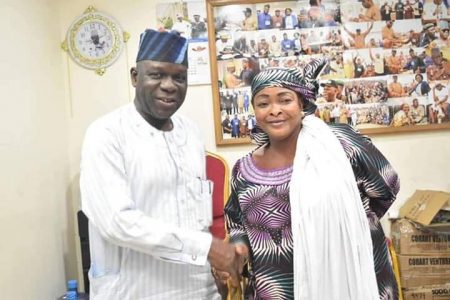 L-R: Chairman, All Progressive Congress (APC), Lagos State, Alhaji Tunde Balogun and the Chairman, Apapa Iganmu LCDA, Alhaji Dr. Funmilayo Akande Mohammed during the Council Chairman’s Courtesy Visit to the Party Chairman’s Office, Party Secretariat, Acme, Ikeja Lagos.
