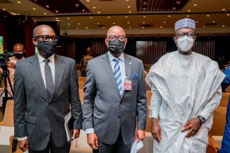 Managing Director/CEO, Federal Housing Authority(FHA), Senator Bareehu Olugbenga Ashafa (middle), Executive Director, Business Development, Hon. Abudlmumin Jibrin(right) and Executive Director, Housing Finance and Corporate Services, Mr Maurice Ekpenyong (left) in a group photograph shortly after the inauguration of the Executive Management Team of the Federal Housing Authority (FHA) at the Ministry of Works and Housing Headquarters, Mabushi, Abuja on Thursday, 13th August 2020.