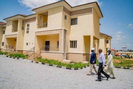 A cross section of the Blocks of One, Two, Three Bedroom Flats and 3-Bedroom Terrace Duplexes during an inspection tour of the 764-Units Federal Housing Authority Residential Layouts (Abuja Mass Housing Scheme ) in Zuba, Abuja, FCT by the Hon. Minister of Works and Housing, Mr Babatunde Fashola, SAN on Tuesday, 31st August 2021.