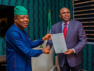 In line with the Imo state government resolve to open up her state for industrialization, the state governor, Rt. Hon. Emeka Ihedioha presented the C of O for 5 hectares of land to the President of the AfriExim bank, Prof. Benedict Okey Oramah, yesterday at Government House, Owerri.