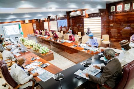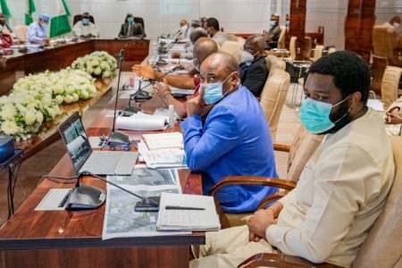 Cross section of the participants  during a Special Meeting on the Partial Closure of the Third Mainland Bridge to discuss Traffic Diversion/Provision of Alternative Routes for Ease of Movement for Road Users within the Lagos Metropolis at the Ministry of Works and Housing Headquarters, Mabushi, Abuja on Tuesday, 14th July 2020.