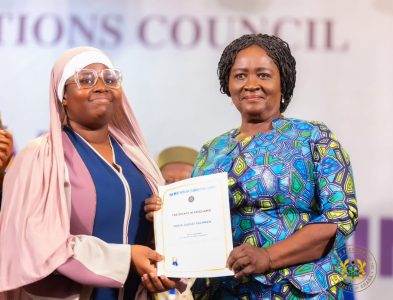 The 1st Prize Winner and Winner of the Best Candidate in West Africa Award, Miss Huda Suglo Suleman receiving her Award from the Vice President of the Republic of Ghana…
