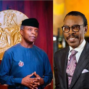 L-R: Vice-President, Prof. Yemi Osinbajo and Chief Executive Officer, Financial Derivatives Company, Bismarck Rewane